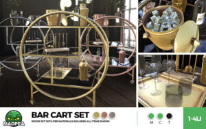 Crafted with premium PBR materials, this exquisite bar cart boasts a sleek design in three stunning colors: Gold, Rose Gold, and Chrome.