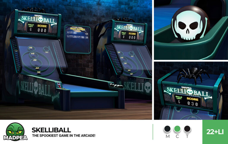 Test your aim in SkelliBall, the bone-chilling arcade game where classic skeeball gets a spooky twist!
