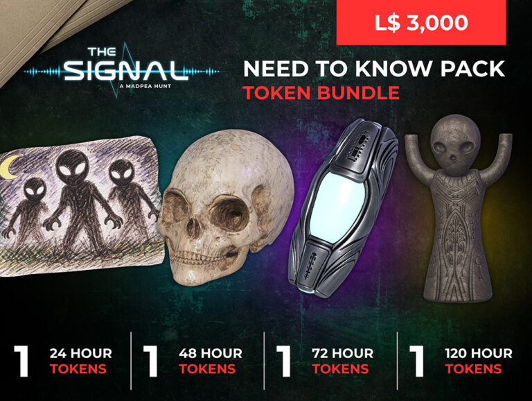 The “Need to know Pack” contains one 24-hour token, one 48-hour token, one 72-hour token, plus one 120-hour token, and costs L$3,000.